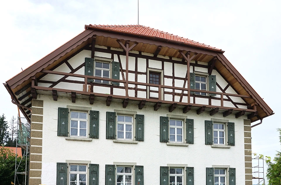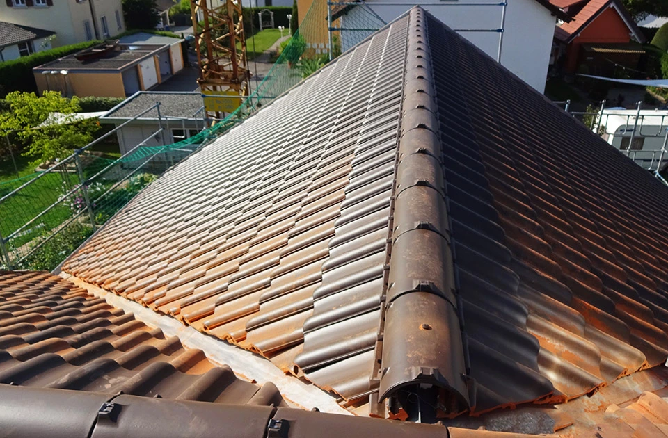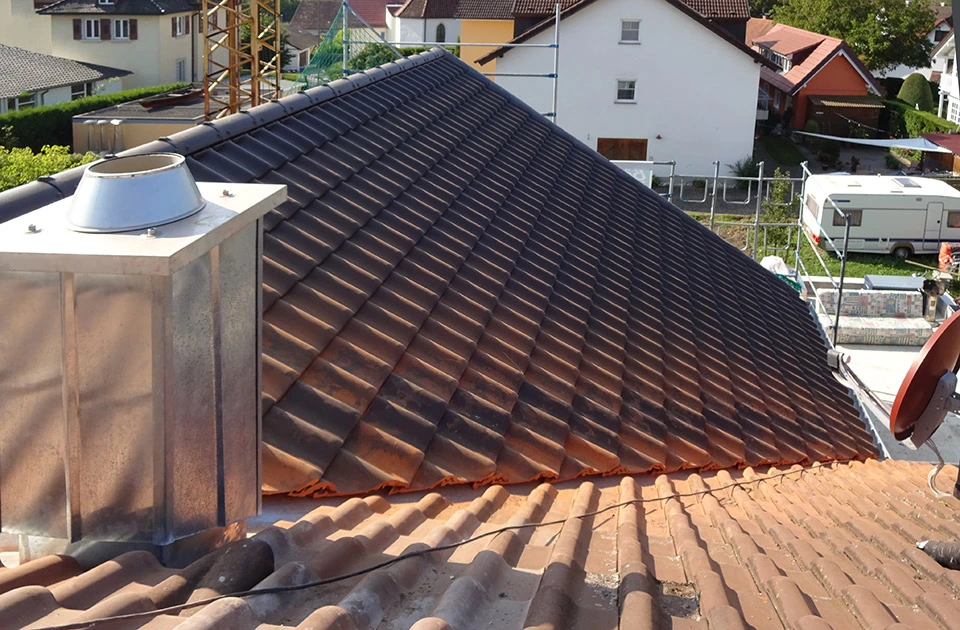 Wir decken Dächer aller Formen ein. Bei der Auswahl von Farben und Deckungsmaterialien beraten wir Sie gerne.